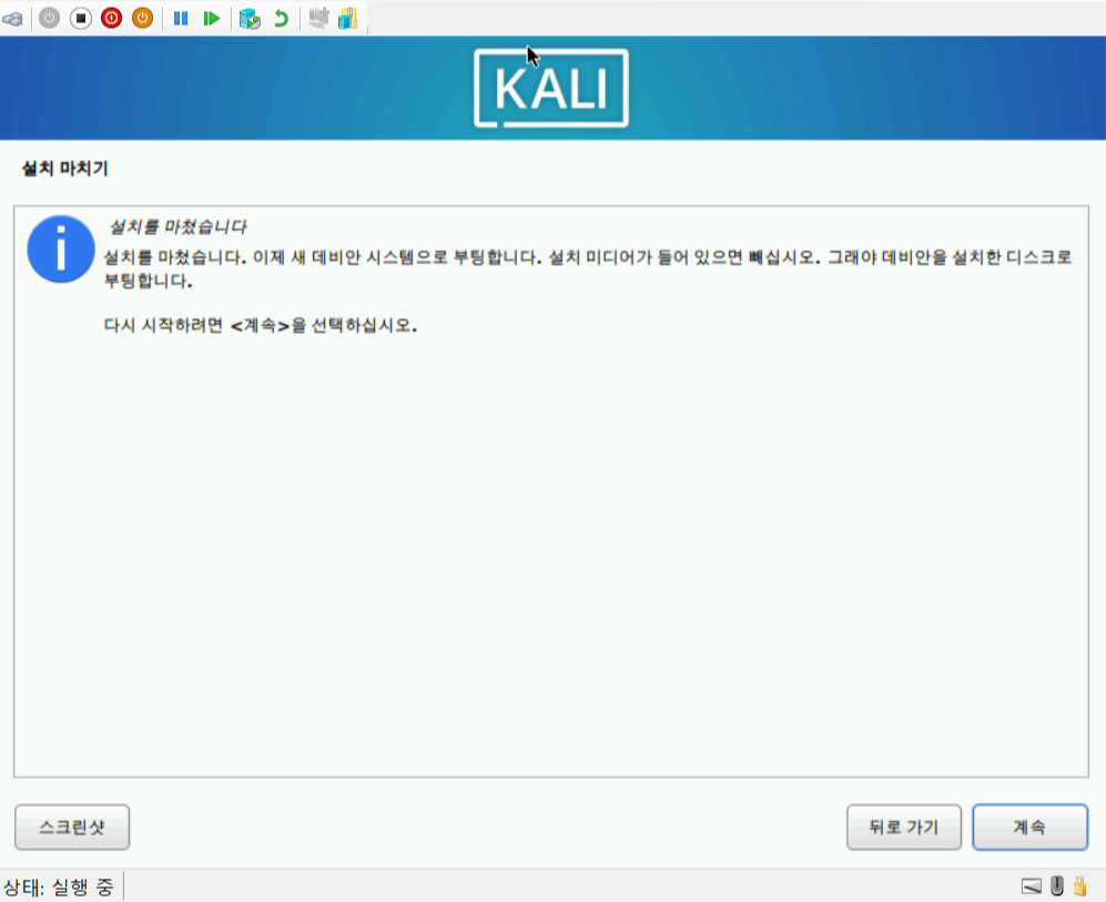 이상으로 Hyper-V에 가상 컴퓨터 칼리 리눅스 설치를 해보았다.